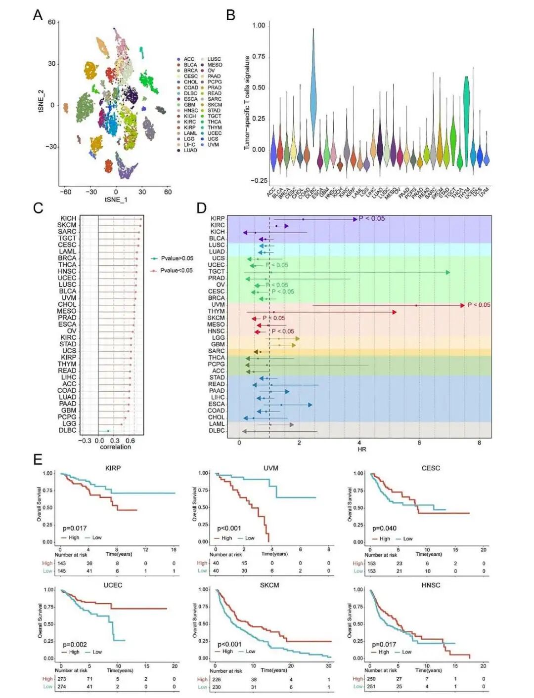 TstcSig与KIRP和UVM的不良预后相关,而与UCEC、CESC、SKCM和HNSC的良好预后相关(图10E)。