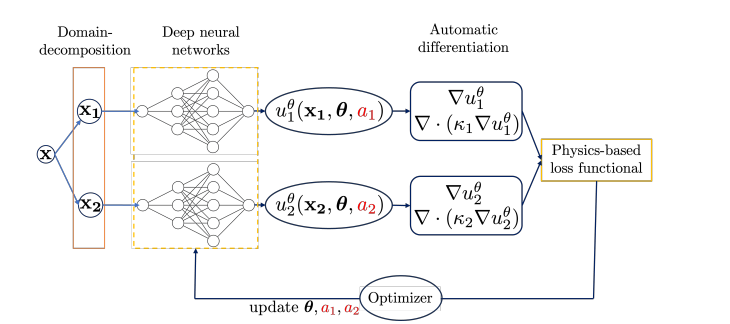 核心公式:在损失函数中加入界面跳跃条件作为额外约束。