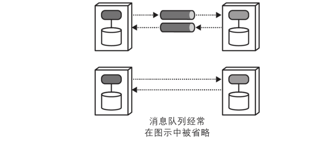 异步调用意味着调用方发起调用之后无需一直接收者的响应就继续往下执行工作,如果需要接收者返回数据值那么就会使用一个异步队列告知调用者结果, 一般我们画架构图会省去MQ这类的细节, 即下图的第2种方式, 如下: