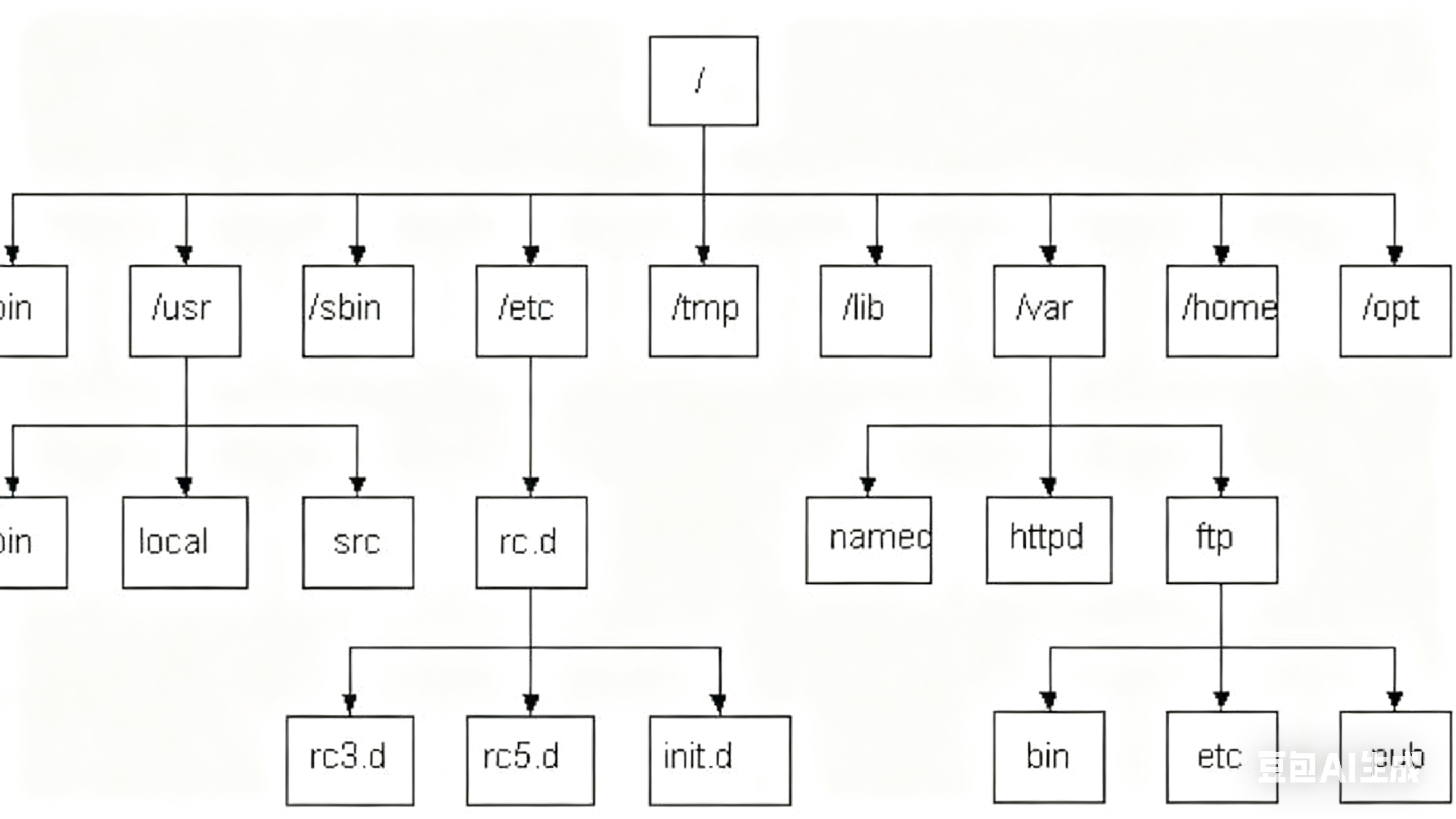 Linux 文件系统结构 | 磁盘上的文件和目录被组成一棵目录树,每个节点都是目录或文件 |
