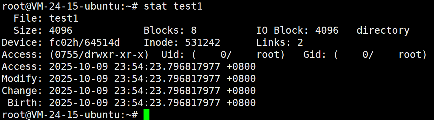 ls -l | 显示详细属性 | drwxr-xr-x 2 root root 4096 Sep 27 12:07 dir |