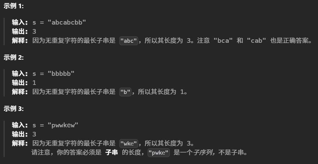 枚举【从每一个位置】开始往后,无重复字符的子串可以到达什么位置。找到其中长度最大的即可。