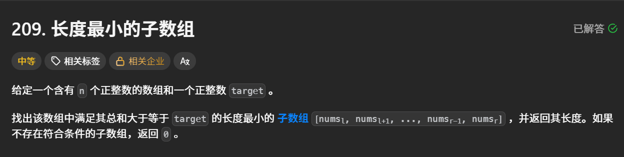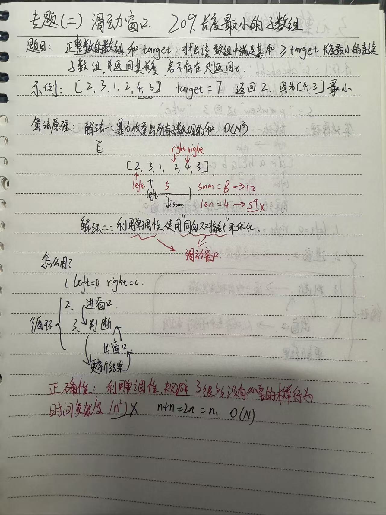【从前往后】枚举数组中的任意一个元素,把它当成起始位置。然后从这个【起始位置】开始,然后寻找一段最短的区间,使得这段区间的和【大于等于】目标值。