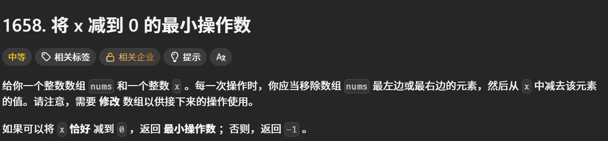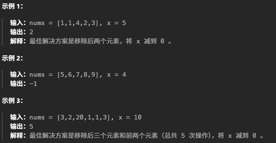 1658. 将 x 减到 0 的最小操作数 - 力扣(LeetCode)