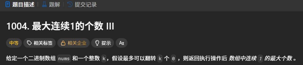 1004. 最大连续1的个数 III - 力扣(LeetCode)