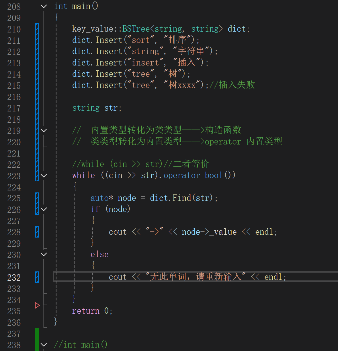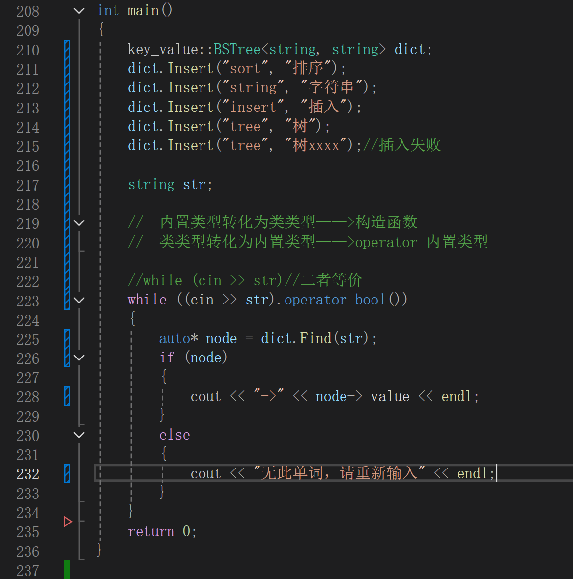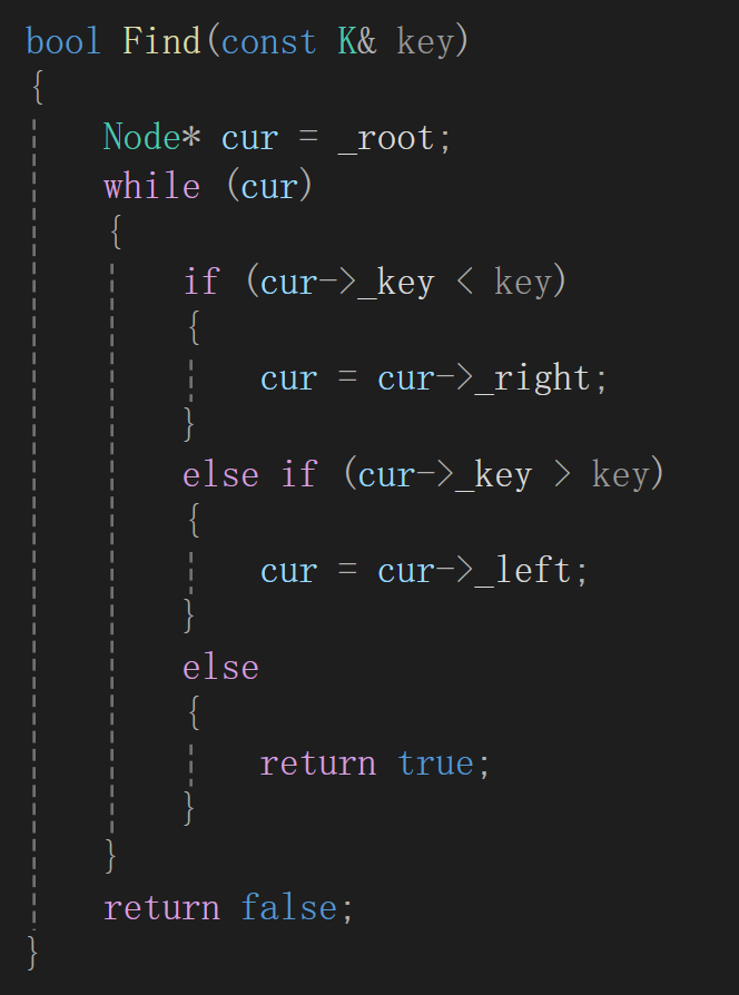 if (cur->_key < key) // 目标key比当前节点大,向右子树搜索