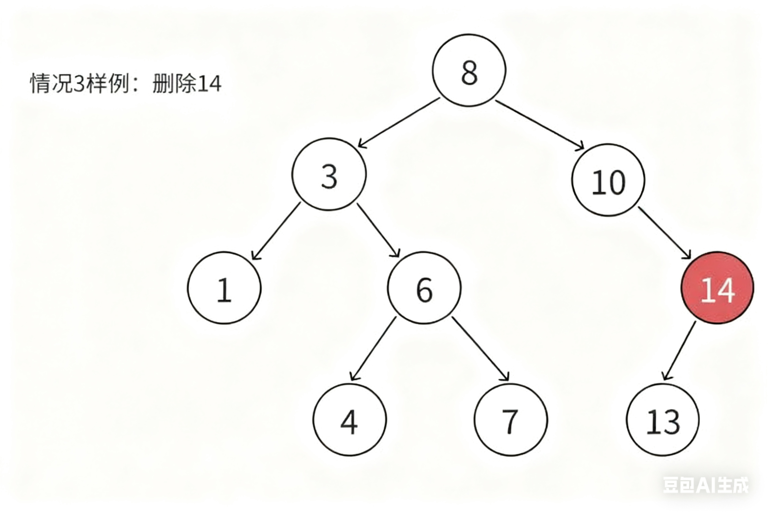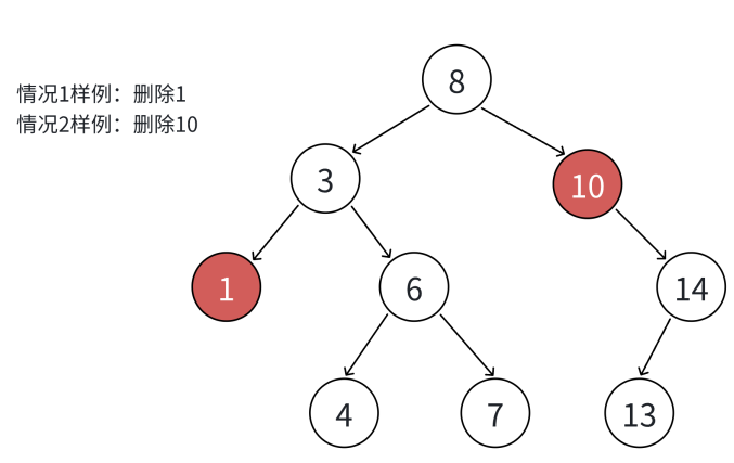 // 情况1:要删除的节点左子树为空(只有右子树或没有子树)