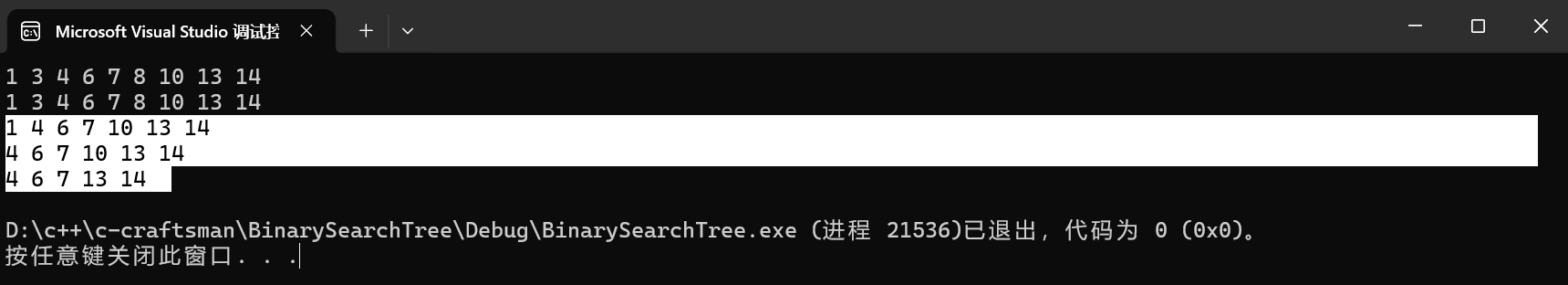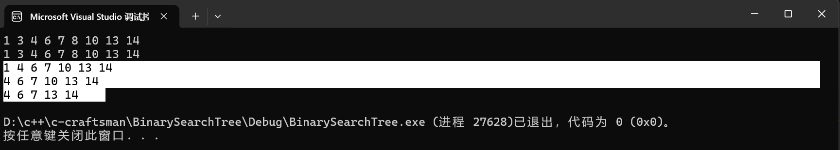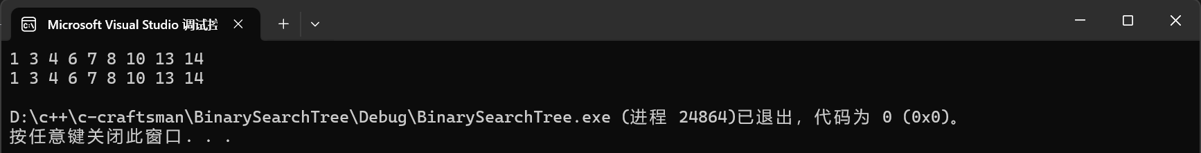 // 打印结果:1 3 4 6 7 8 10 13 14(成功,并且是有序的——中序遍历)