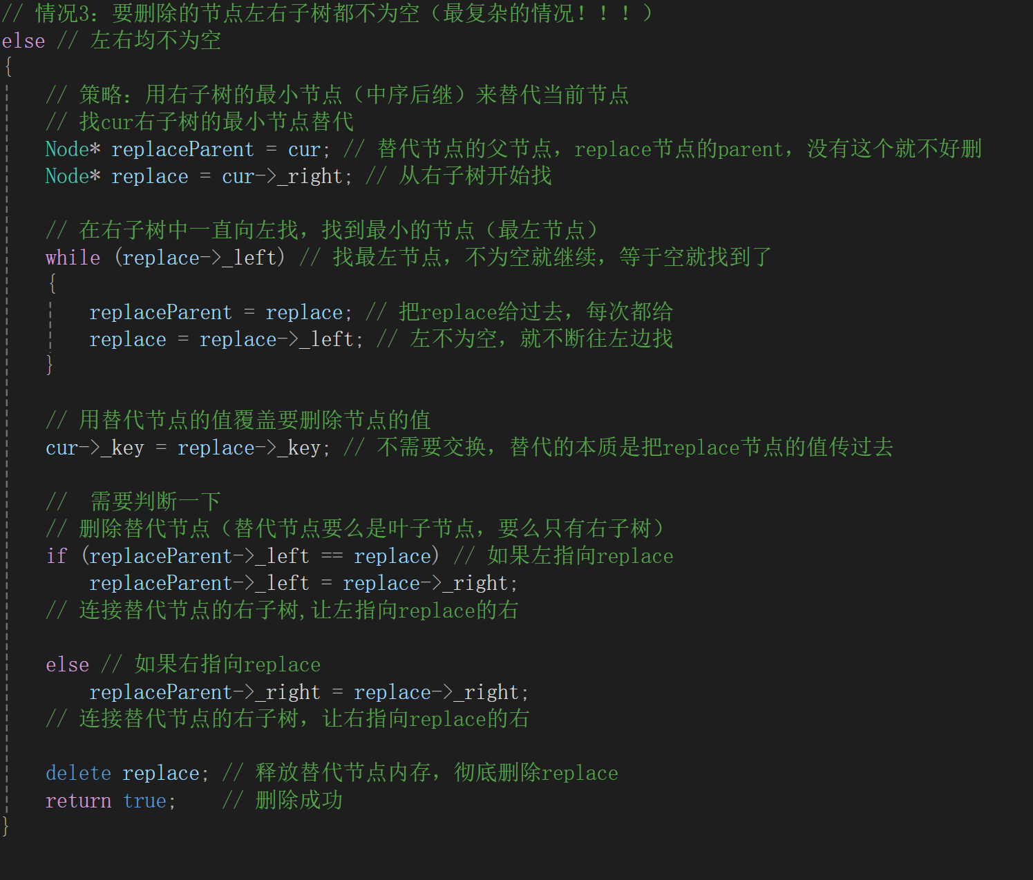 // 情况3:要删除的节点左右子树都不为空(最复杂的情况!!!)