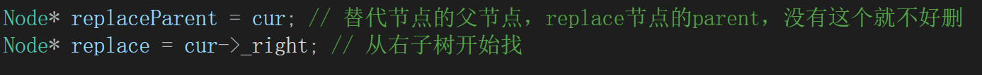 parent->_right = cur->_left; // 父节点的右指针指向cur的左孩子