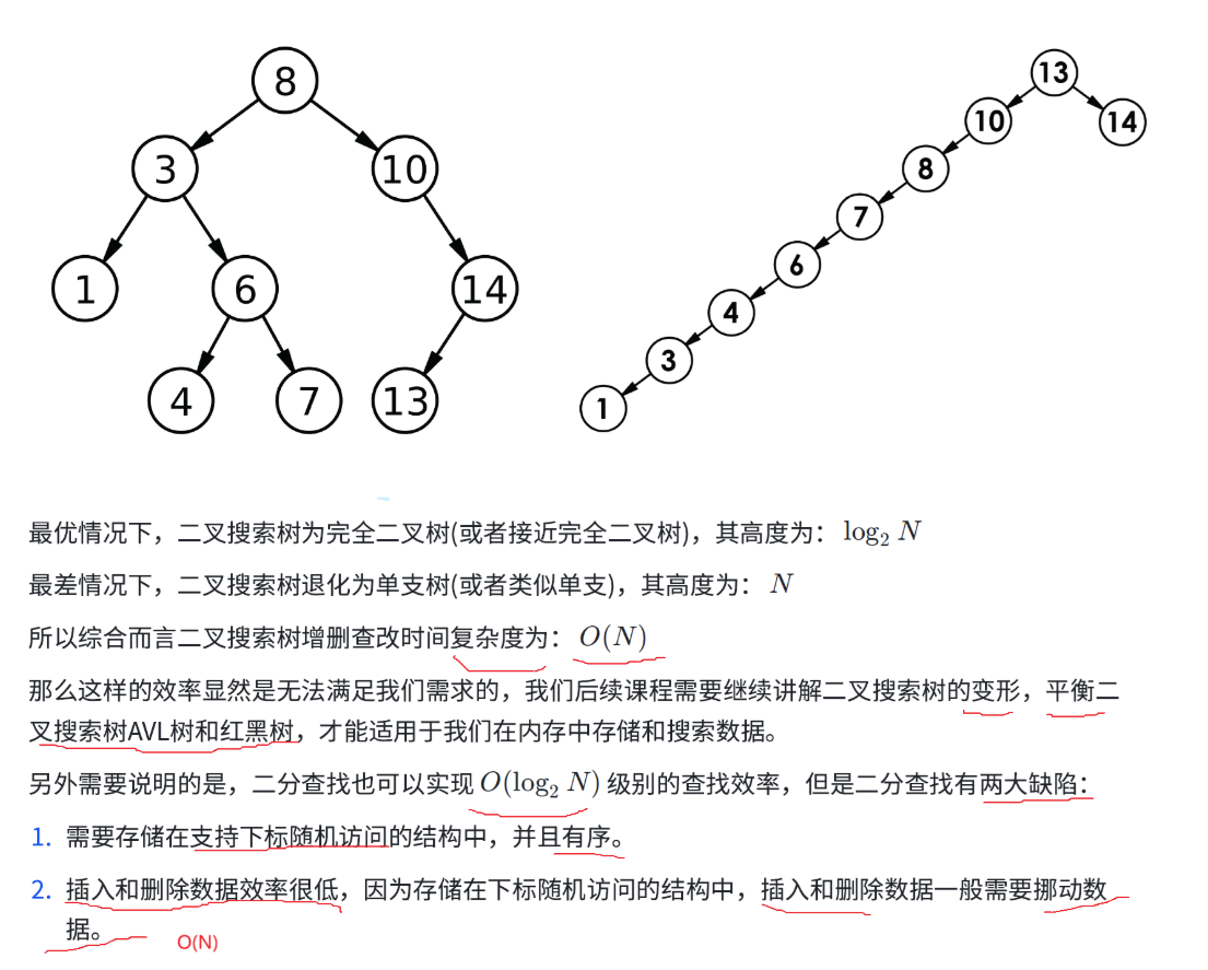 那么这样的效率显然是无法满足我们需求的,因此后面博主会介绍二叉搜索树的变形——平衡二叉搜索树AVL树和红黑树,才能适用于我们在内存中存储和搜索数据