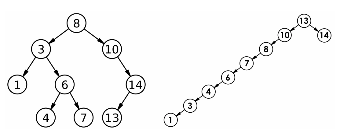 如右图所示:数据越有序,插入结果越坏——高度高、递归深、效率低 如左图所示:插入越无序的数据,左右会平衡一点,结果反而越好