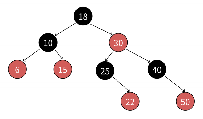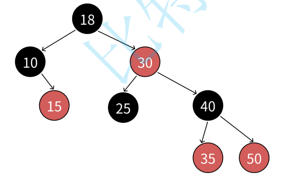 3. 如果一个结点是红色的,则它的两个孩子结点必须是黑色的,也就是说任意一条路径不会有连续的红色结点