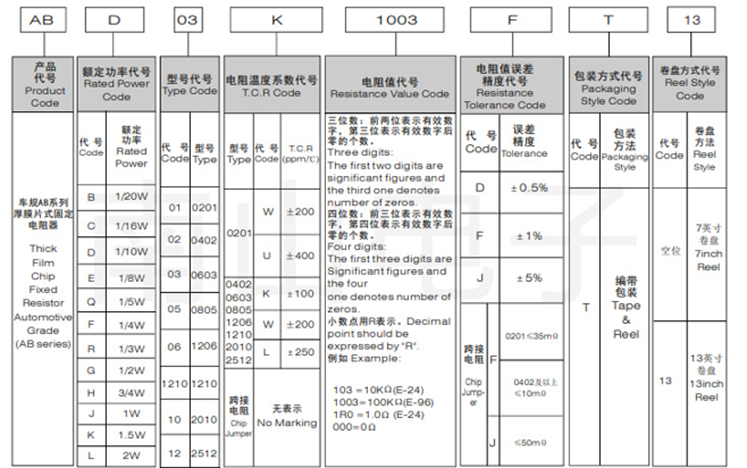 额定功率统一为1/10W,满足车载低功耗场景需求;温度系数控制在±100ppm/℃,优于普通电阻±200ppm/℃的水平;阻值精度覆盖±0.5%、±1%、±5%,适配不同精度需求的车载电路。