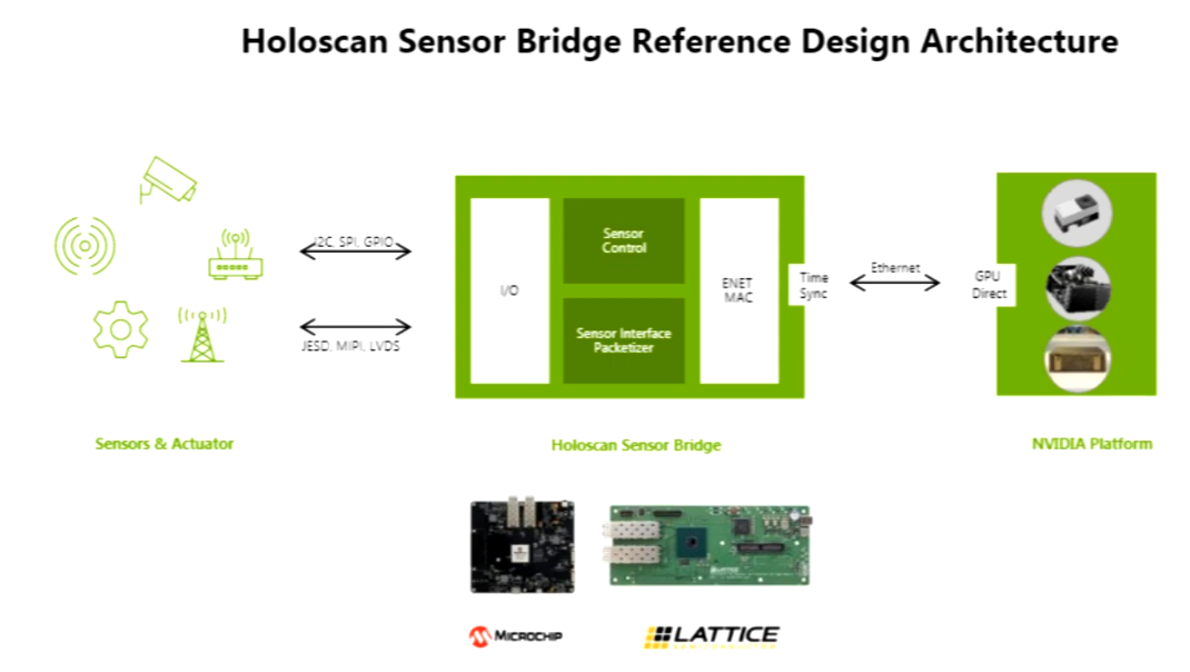 那么,如何着手使用全栈的Sensor Bridge呢?我们英伟达提供了软件,用于简化从传感器到以太网的连接流程。我们有FPGA合作伙伴来提供硬件,针对多千兆以太网解决方案,有莱迪思(Lattice)和微芯科技(Microchip)这两家FPGA合作伙伴。现在已经有可供使用的开发者套件,能帮助你快速开启开发工作。这个开发者套件包含Holoscan传感器桥接平台IP(知识产权核),还有用于连接摄像头的摄像头连接器。
