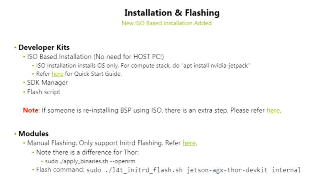 这是一种更快捷的入门方式。当然,传统的通过主机PC使用SDK管理器或烧录脚本进行外部刷新的方法仍然可用。但如果你是初次接触Jetson AGX Thor开发套件,使用ISO镜像通过U盘安装,是最推荐的方式。