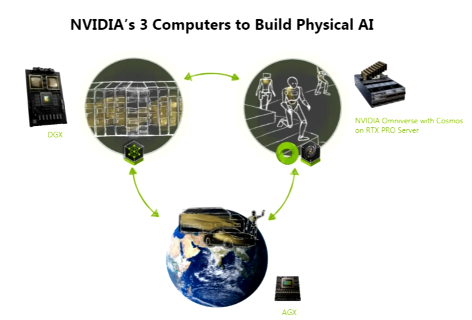 首先,我想谈谈如何用英伟达的三大计算平台方案解决物理AI问题。