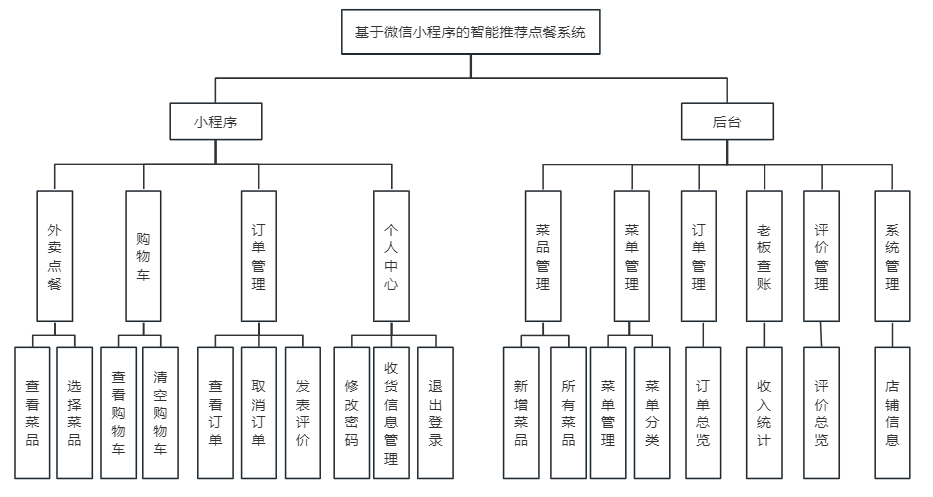 本文设计并实现了一个外卖点餐小程序,融合了传统的餐饮外卖管理与计算机技术,实现外卖业务的高效科学管理,对于商家而言佣金付出较少,经营成本有所改善,使其服务和管理得到实质性的提升,提高品牌形象和行业核心竞争力。而用户则利用微信小程序进行点餐,无需安装占据手机内存,也较为方便快捷。