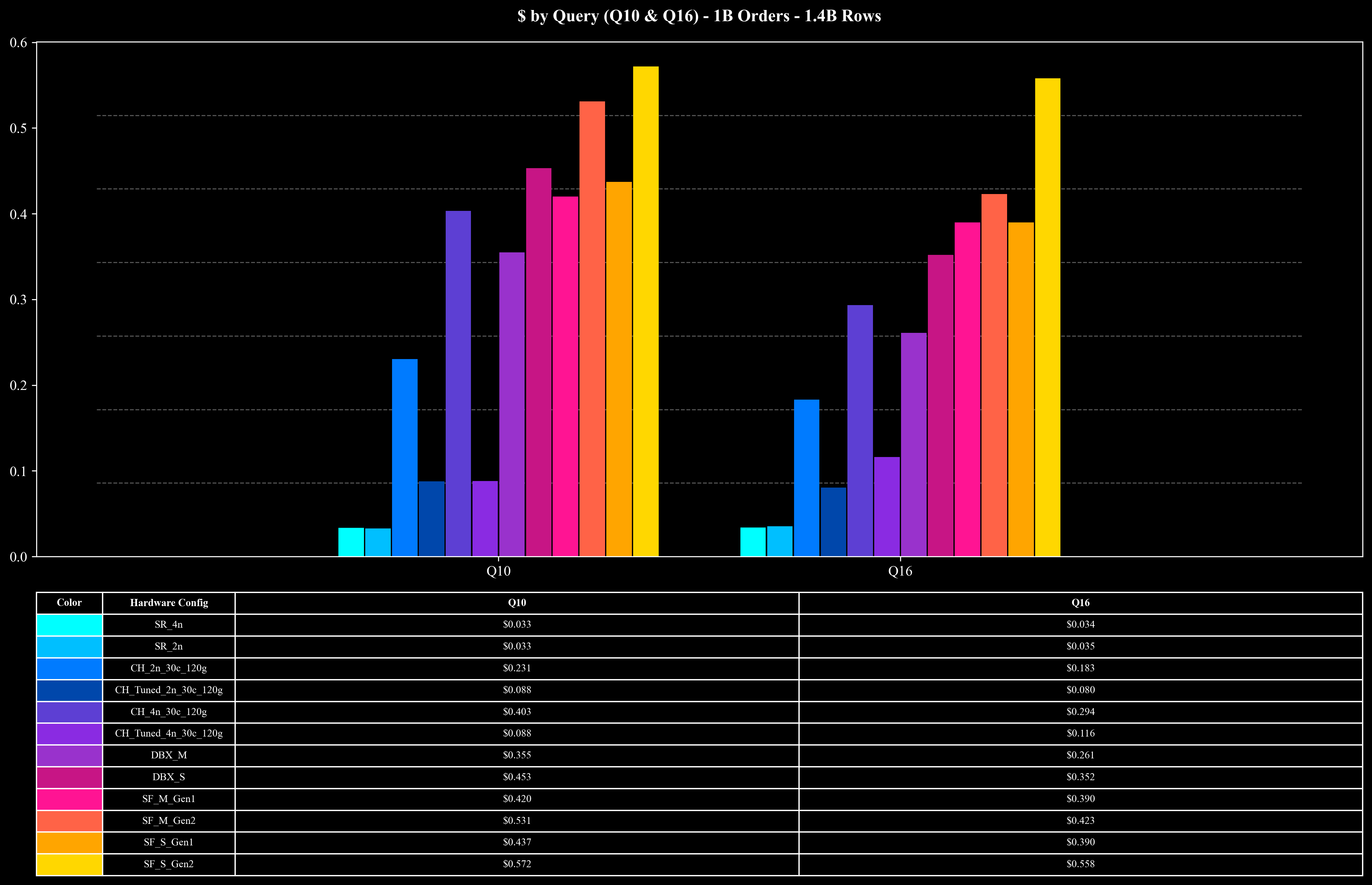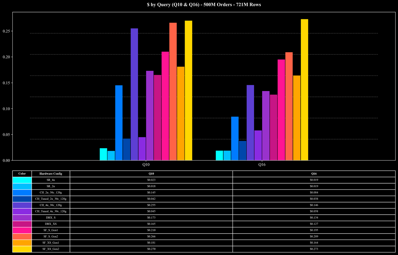 Cost per Query (Q10 & Q16 Only)