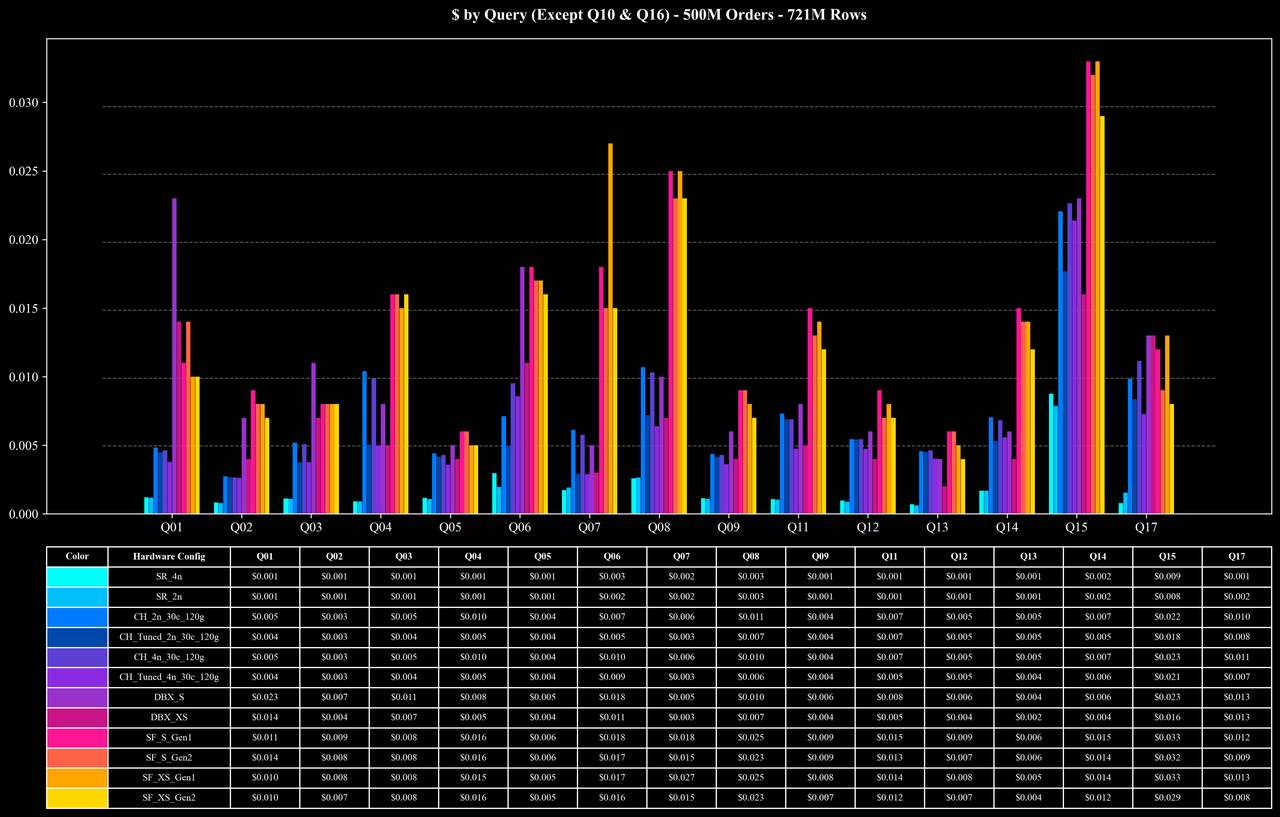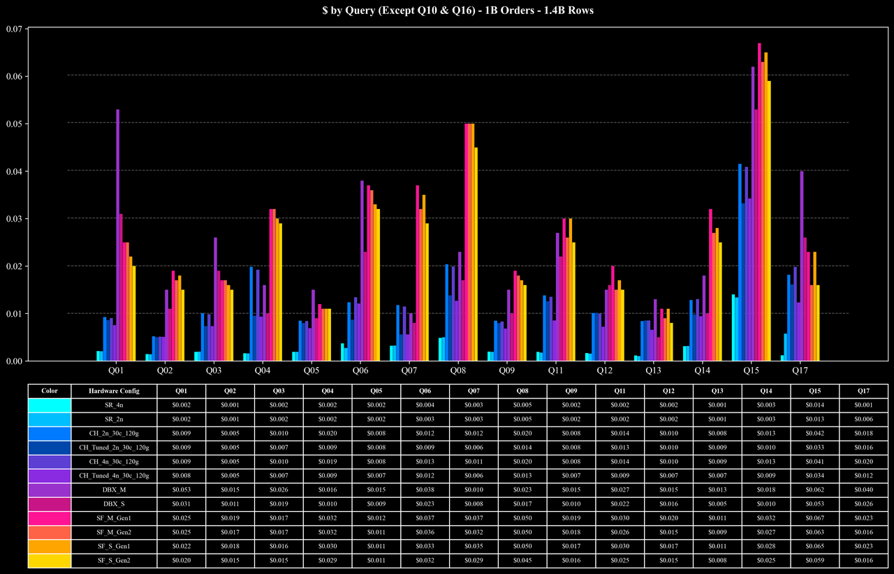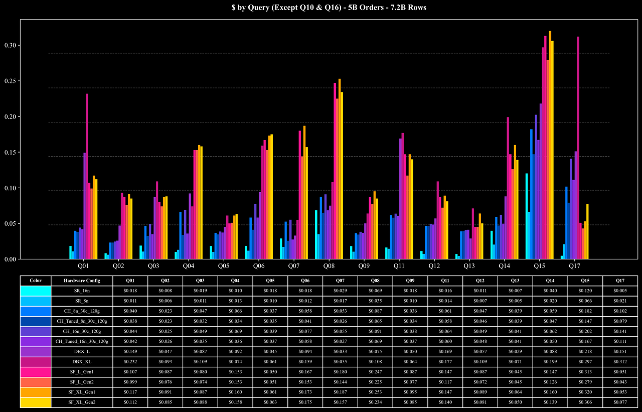 Cost per Query (Except Q10 & Q16)