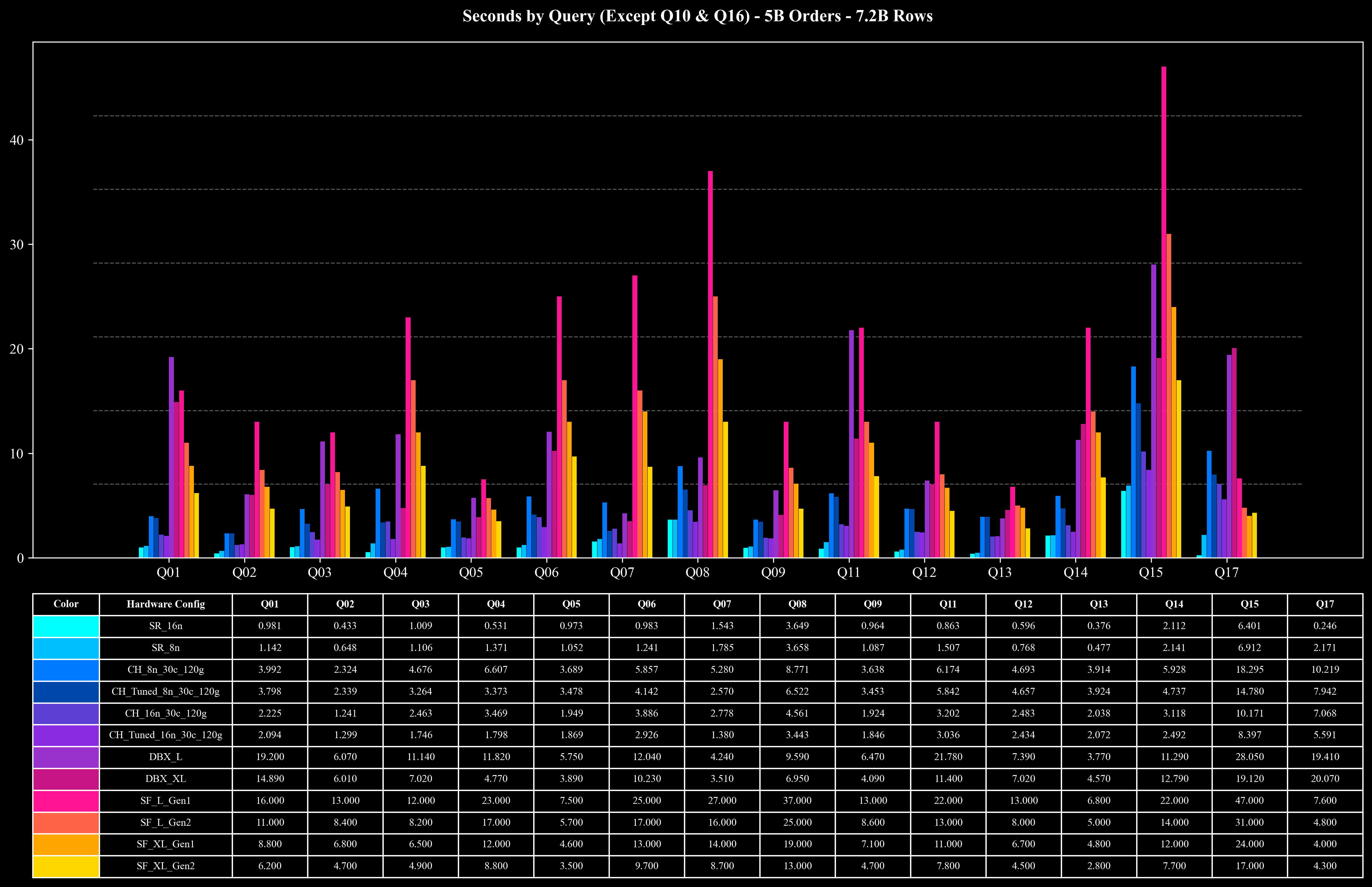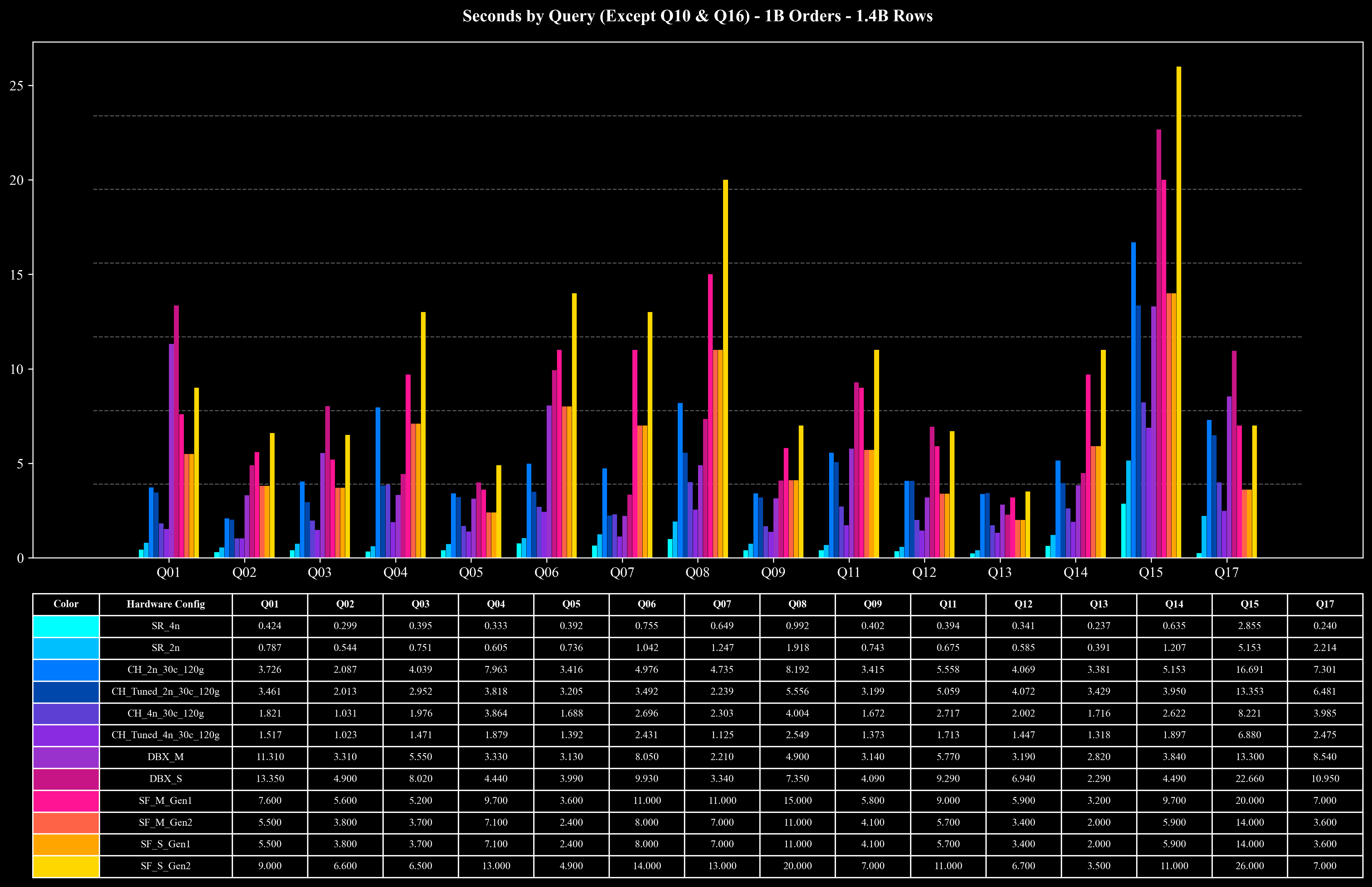 Runtime per Query (Except Q10 & Q16)