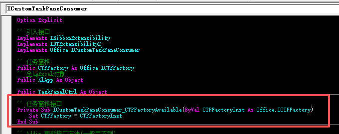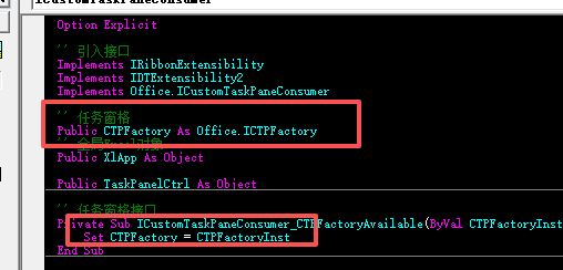 1.3.创建一个全局变量存储任务窗格工厂接口,方便后面调用