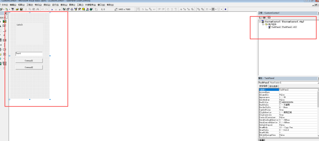 二,创建一个名为CustomContorl的ActiveX自定义控件项目,里面的UserContorl控件名为TaskPanel