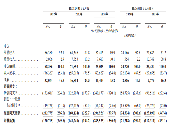 不过纵向来看,公司营收呈持续上升态势,2022-2024年营收分别为6838.6万美元、7189.9万美元、7502.5万美元,尤其在2025年上半年增速尤为明显,营收为3543万美元,同比增长43.3%。