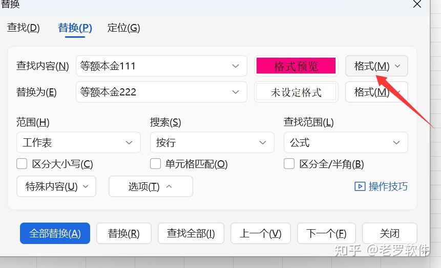 其实, 点击查找替换对话框中的 “选项” 按钮,会展开一个功能强大的面板。我们来讲解一下。