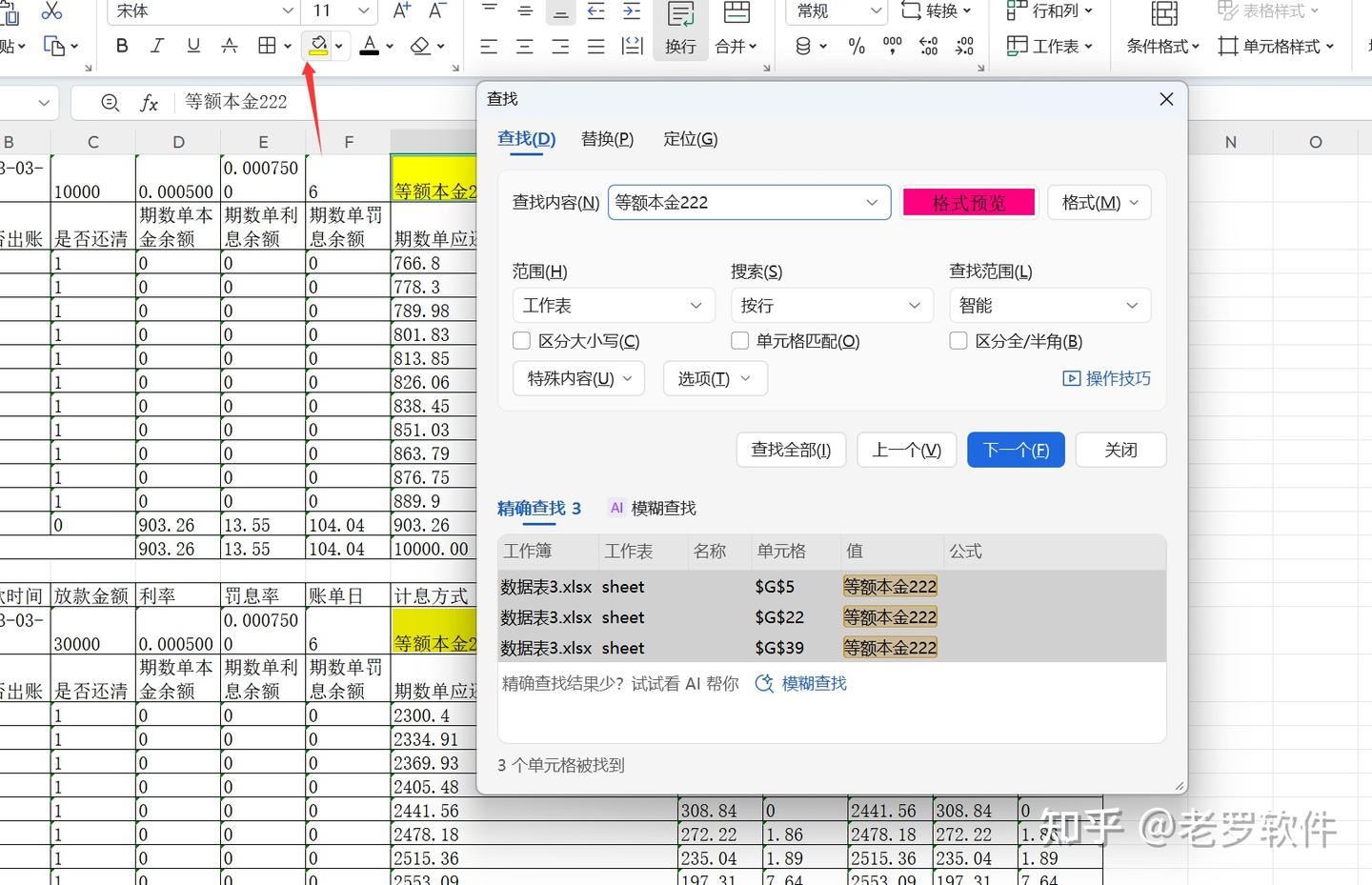 WPS没有直接的“高亮显示所有结果”按钮,但我们可以这样实现, 首先查找到结果: