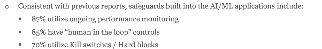 这表明监管者不懂技术的旧叙事已经过时。取而代之的是,监管参与的常态化。百分之七十的机构已经与监管机构就AI/ML应用进行了接洽,远高于2023年的百分之五十三。