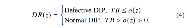 其中𝐷𝑅(𝑧)表示基于阈值的检测结果,𝑇 𝐵为预设阈值,𝑧代表特征图像,𝑜(·)为特征提取的输出图像。缺陷DIP的特征示例如图5所示。