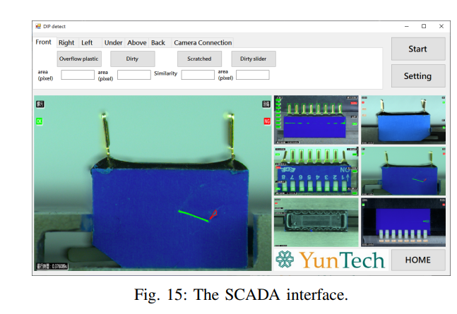 摘要:传统工业元件的缺陷检测耗时费力,不仅给质检人员带来沉重负担,也使产品质量难以管控。本文针对工业广泛使用的双列直插式封装(DIP)元件,提出一种结合数码相机光学技术与深度学习模型的自动化缺陷检测系统。研究聚焦DIP两大常见缺陷类型:(1)表面缺陷;(2)引脚缺陷。针对缺陷样本图像匮乏给检测任务带来的挑战,采用ConSinGAN生成规模适中的数据集用于训练与测试。我们分别对四种YOLO模型(v3、v4、v7、v9)进行独立测试及ConSinGAN数据增强对比实验。结果表明,采用ConSinGAN增强的YOLOv7模型在检测精度(95.50%)与耗时(285毫秒)上均优于其他版本,且显著超越基于阈值的传统方法。此外,本研究还开发了数据采集与监视控制(SCADA)系统并构建相应传感器架构。该自动化缺陷检测方案可灵活拓展至多类型缺陷检测场景,对缺陷数据不足的情况具有良好适应性。