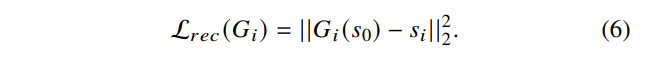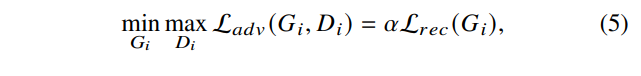 其中L𝑎𝑑𝑣(𝐺𝑖,𝐷𝑖)为与WGAN[50]相同的对抗损失,重构损失𝐿𝑟𝑒𝑐(𝐺𝑖)用于提升训练稳定性(实验中𝛼设为10):
