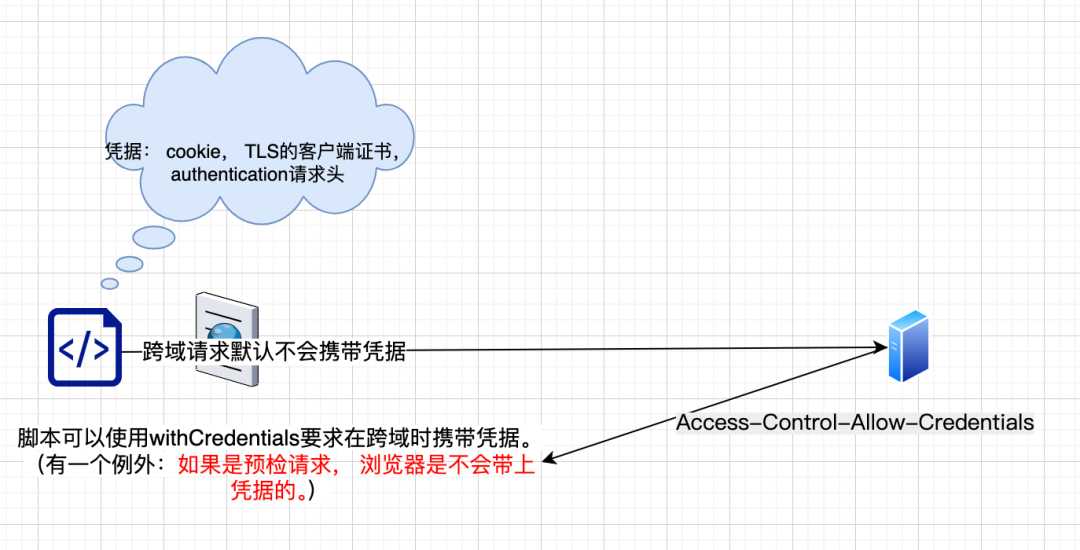 1> 脚本默认不携带凭据 2> 脚本可通过WithCredentials= true 配置要求浏览器携带凭据。