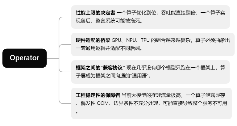 而随着模型规模爆炸式增长,算子的角色已经变成了: