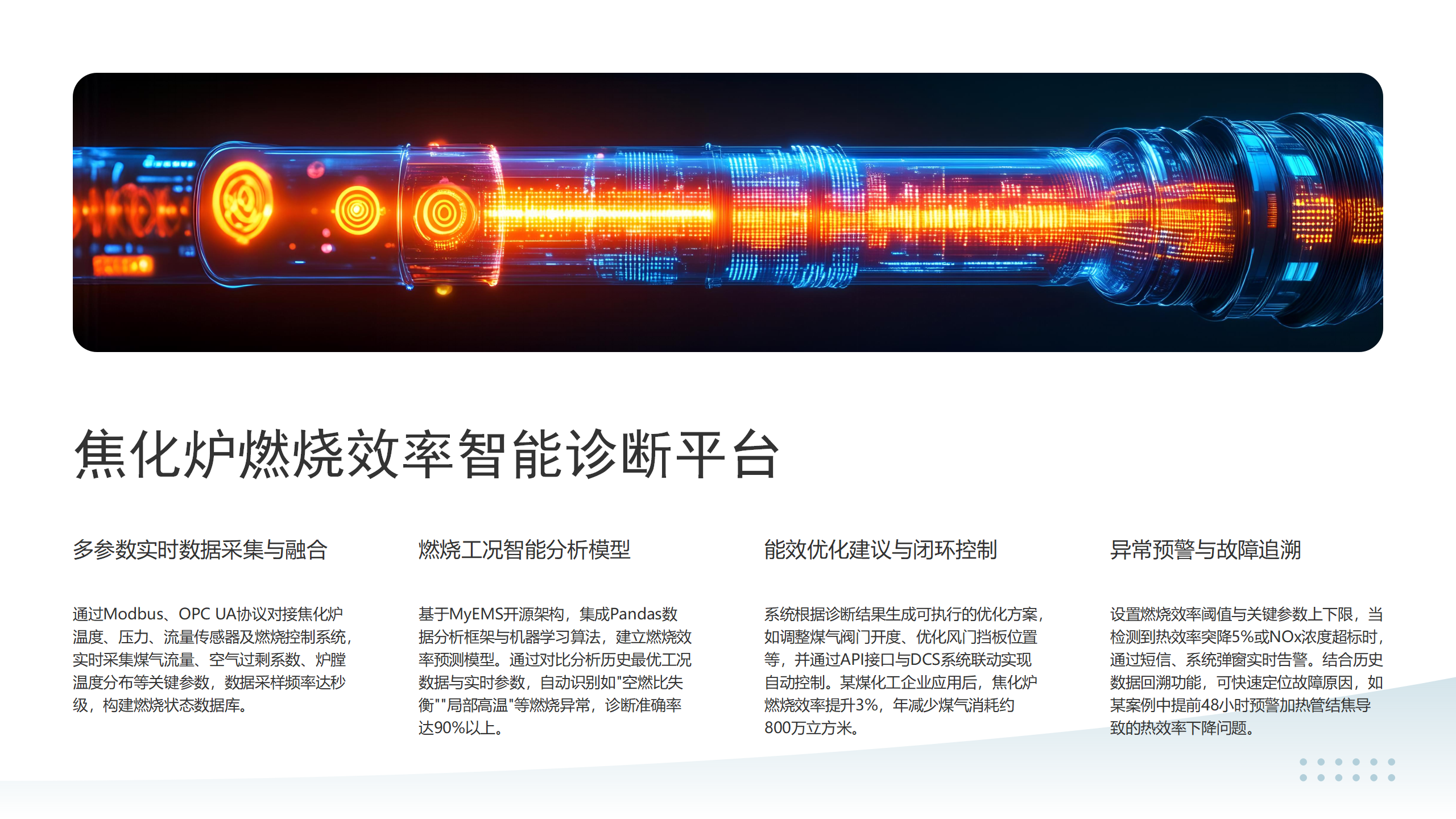 MyEMS的焦化炉燃烧效率智能诊断平台,为提升焦化炉燃烧效率和安全性提供了全面且先进的解决方案。