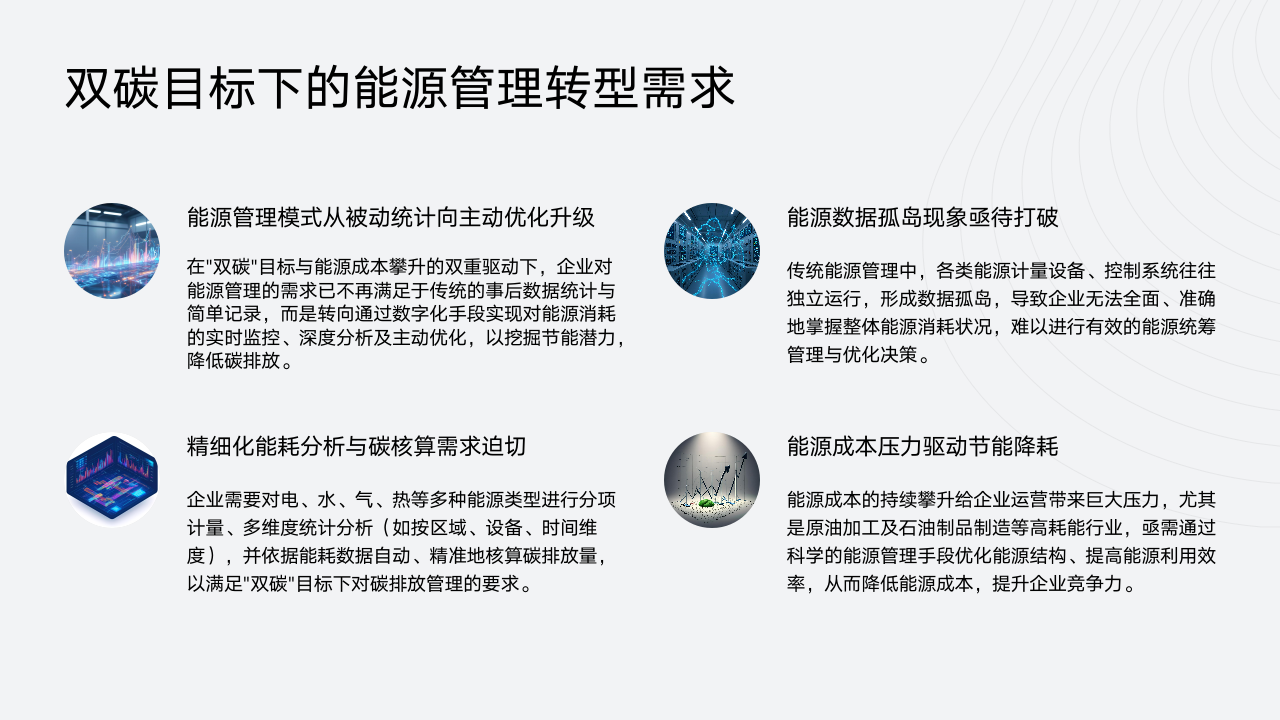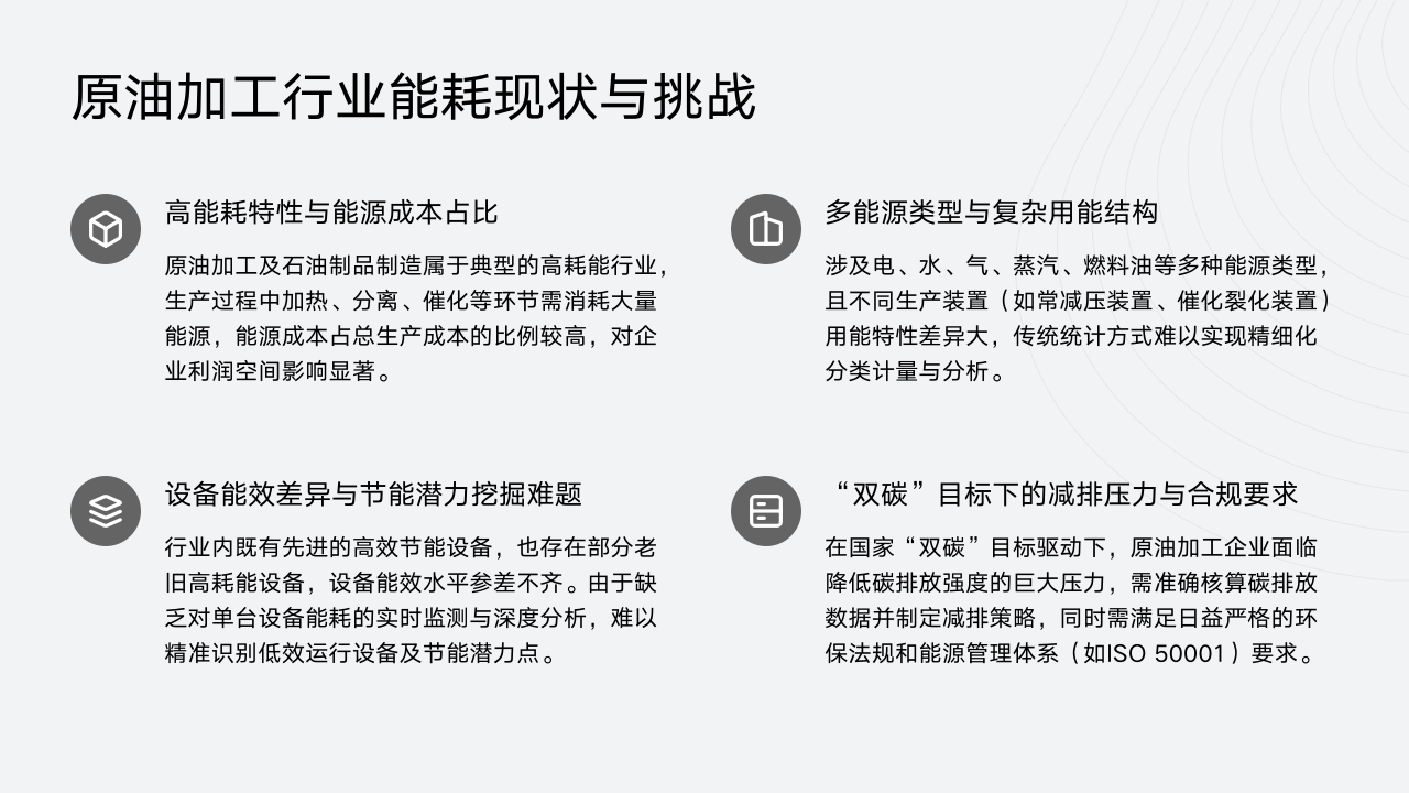 在“双碳”目标与能源成本攀升的大背景下,原油加工及石油制品制造企业的能源管理转型需求极为迫切。