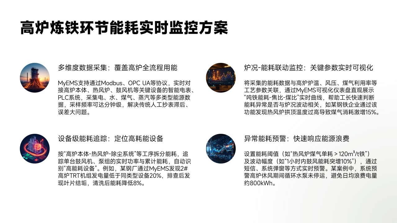 接下来,我们通过一个大型钢铁集团的高炉能耗优化案例,深入了解MyEMS系统的实际应用效果。