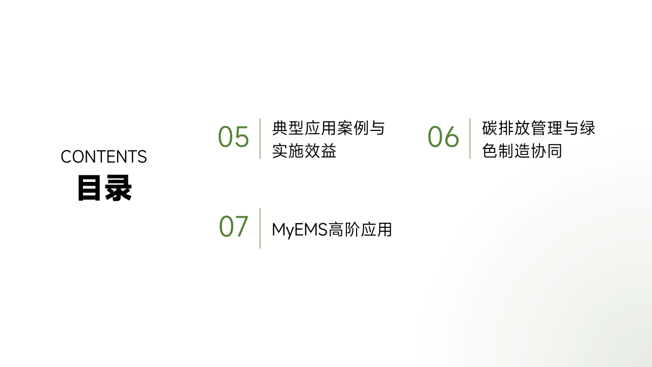 前面我们了解了MyEMS系统在不同企业的应用案例及投资回报情况。接下来的“碳排放管理与绿色制造协同”章节至关重要。在“双碳”背景下,企业需兼顾碳排放管理与绿色制造。后续我们将看到MyEMS如何助力企业在这方面取得成效。