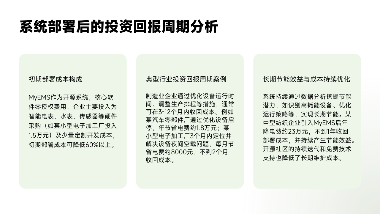 在企业能源管理系统的部署中,投资回报周期是企业极为关注的重点。MyEMS系统在这方面展现出了显著优势。