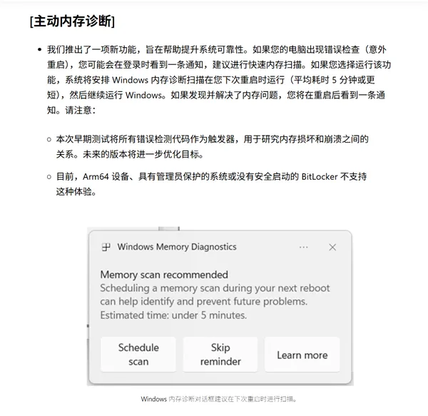 内存诊断功能将率先在Windows 11 Insider Preview Build 26220.6982(开发者频道)中上线。