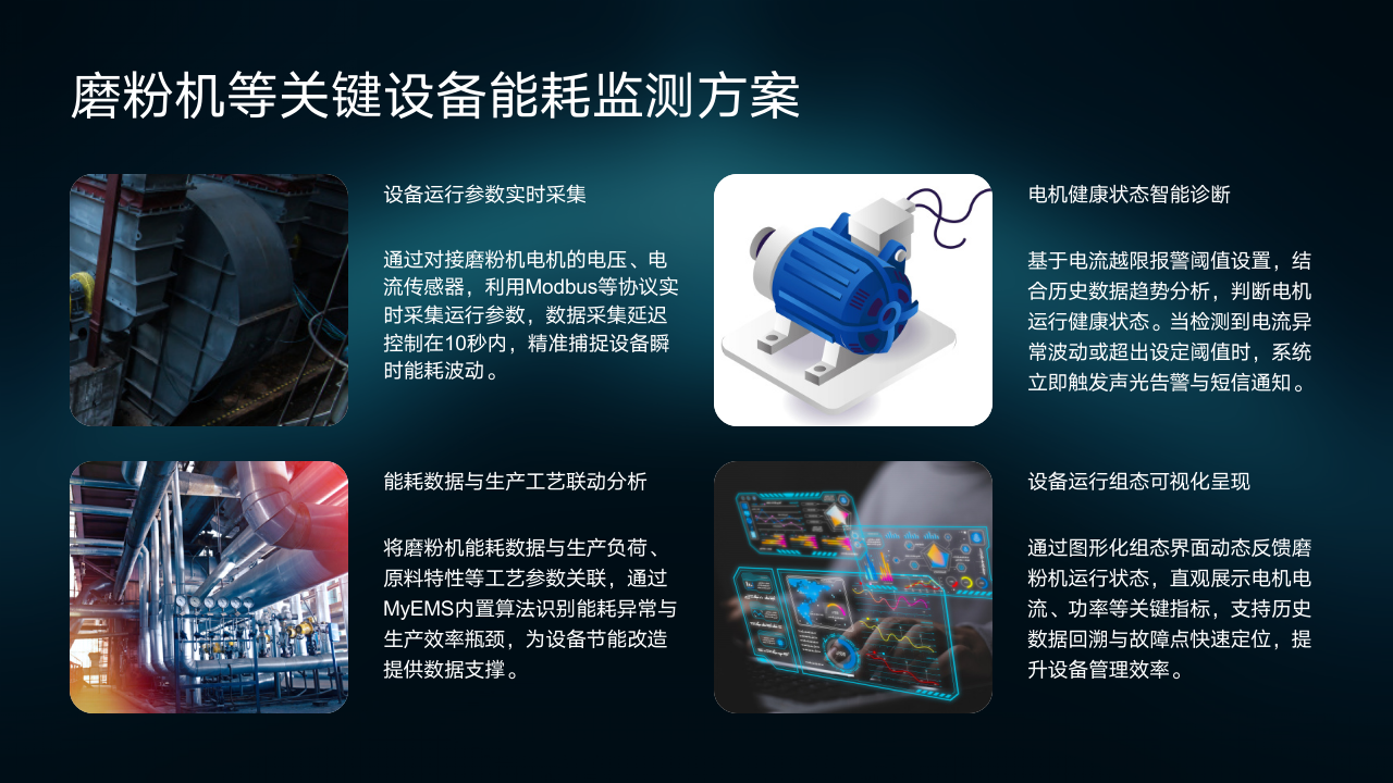 磨粉机等关键设备的能耗监测方案,对于非金属矿物制品业的节能增效至关重要。该方案主要包含四个方面,能够实现对磨粉机设备的全方位、精细化管理。