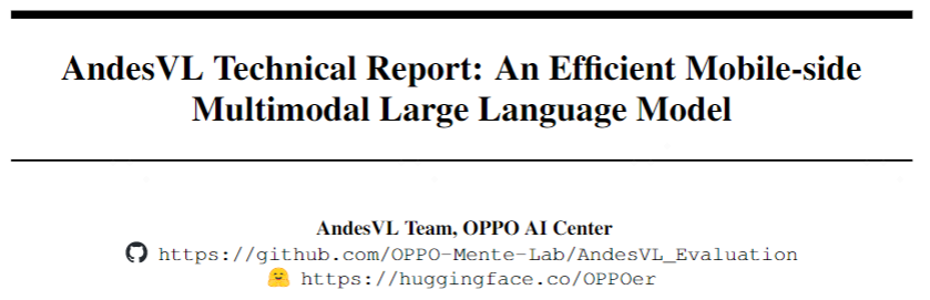 引言 当前端侧多模态大模型普遍面临性能不足、能力有限、适配性差等问题,难以满足端侧对高性能、强隐私、低延迟的需求,成为制约下一代 AI 手机发展的关键。 为此,OPPO AI 中心推出开源的全链路适配的端侧多模态大模型 AndesVL。该模型兼具 SOTA 水平的通用多模态理解推理能力与端侧专项优势,含 0.6B-4B 四档尺寸套件,支持多场景灵活部署,还具备强 GUI 与多语言能力,更将全面开源。其通过先进技术实现端侧效果与效率均衡,为端侧多模态大模型应用树标杆,助力 AI 手机等场景创新。AndesVL 具有通用能力强、端侧能力专、适用范围广、端侧部署好、端测试配快等诸多优势。AndesVL 浮点数模型在多个领域共 30 余个 benchmark 上取得相近尺寸模型的 SOTA 效果,端侧部署的模型实现高达 6.7 倍的峰值解码加速比以及 1.8BPW 的压缩效率。详细的 paper 和开源模型地址如下: tech report 地址: https://arxiv.org/pdf/2510.11496 huggingface 地址: https://huggingface.co/OPPOer github 地址: https://github.com/OPPO-Mente-Lab/AndesVL_Evaluation