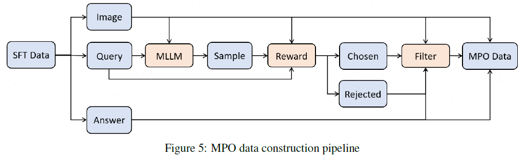直接偏好优化(DPO)已成为将大语言模型(LLM)与人类偏好对齐的主流方法,由于其在语言模型对齐中的良好表现,近期一些研究已将 DPO 应用于多模态场景中。然而,在多模态大语言模型中应用 DPO 仍面临两大挑战:一是缺乏全面且高质量的多模态推理偏好数据集,二是 DPO 本身无法评估单个回答的绝对质量。为应对这些问题,InternVL 团队提出了一种新的方法——混合偏好优化(MPO),该方法已在多个多模态推理评估任务中展现出更优的性能表现。