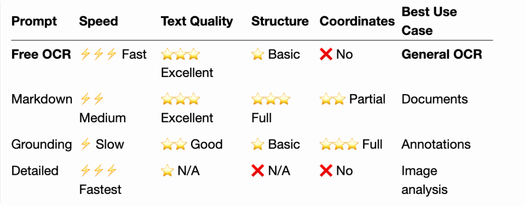 Claude 重新查看 DeepSeek-OCR 的 README,发现不同提示词的模式: