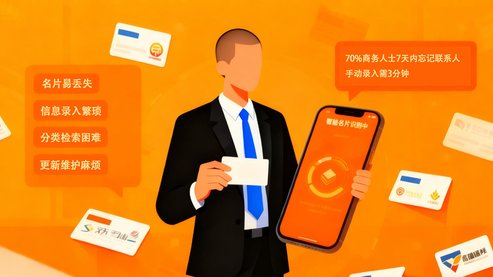 当今商务社交场所的瞬息万变,但名片交换依然是建立联系的重要方式。然而,传统名片管理面临着诸多痛点:名片容易丢失、信息录入繁琐、分类检索困难、更新维护麻烦。据统计,超过70%的商务人士会在收到名片后的一周内忘记联系人详情,而手动录入一张名片平均需要3分钟时间。这些低效环节不仅浪费了宝贵的时间资源,更可能导致潜在商业机会的流失。