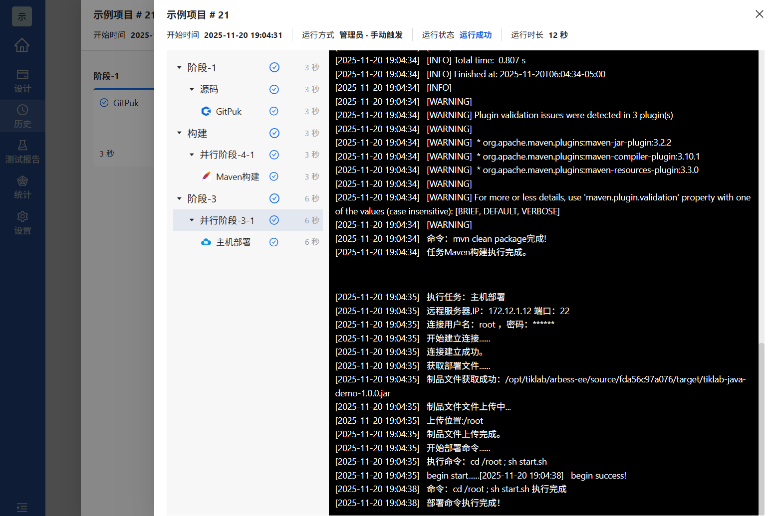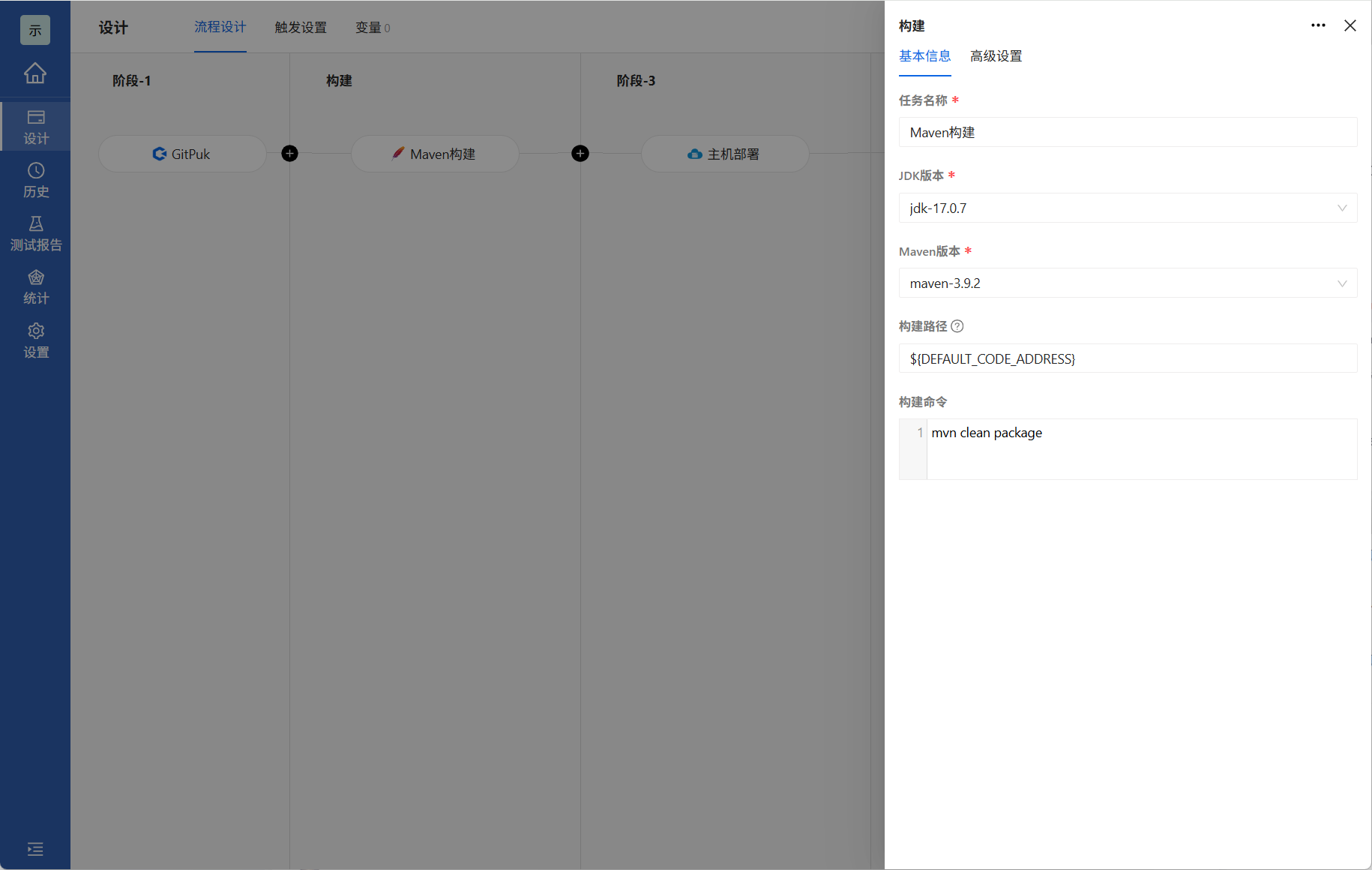 源码配置完毕后,配置构建任务,Arbess支持多种构建方式这里以Maven为例,填入对应内容后点击确定即可