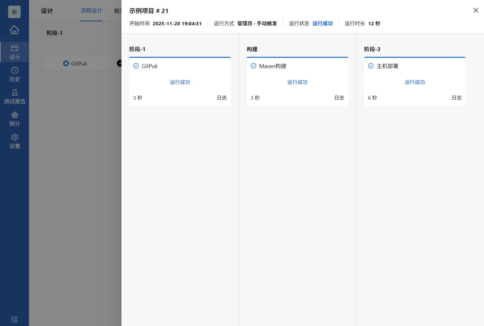 3.点击日志进入日志页面,可以详细查看运行日志