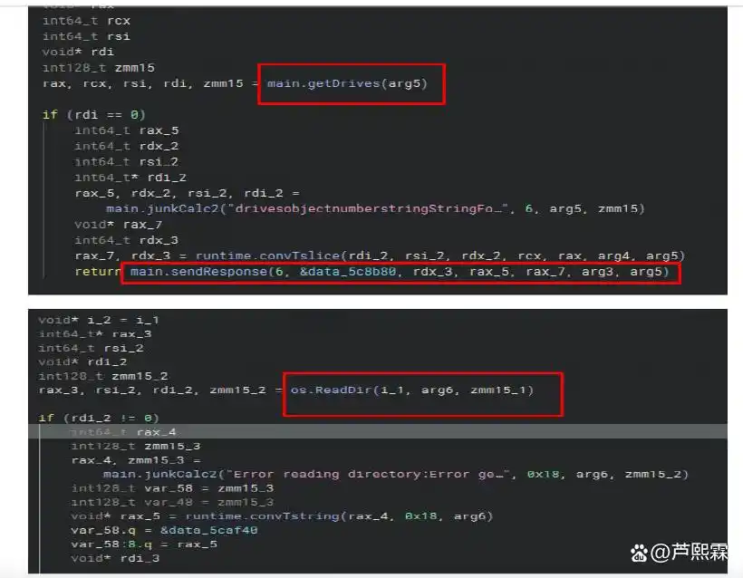 文件遍历:通过os.ReadDir扫描挂载磁盘,定位敏感文档;